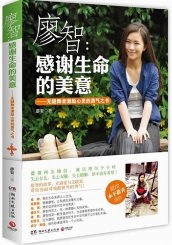 《廖智:感謝生命的美意》一書,記載了廖智作為一個失去雙腿的舞者對生命的思索和對夢想的追尋的勵志經(jīng)歷。此書由中南傳媒旗下的博集天卷和湖南文藝出版社精心制作,排版精美,有大量廖智在生活和排練中的真實照片,悲愴的舞姿震撼人心。此書上市后被稱為“激勵心靈的勇氣之書”,大量廖智的內(nèi)心獨(dú)白感人至深,獲得柴靜、楊瀾、撒貝寧、魯豫等眾多名人的推薦。