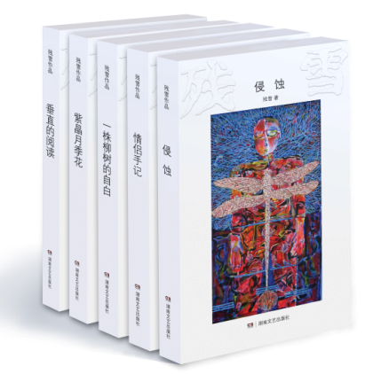 由湖南文藝出版社首次結集出版的“殘雪作品”是著名作家、中國當代文學先鋒派代表人物殘雪于2003-2013年間創作的全部短篇小說,共推出五種——《情侶手記》《侵蝕》《一株柳樹的自白》《紫晶月季花》《垂直的閱讀》,集中呈現了殘雪作品濃郁的先鋒意味和獨特的文學情懷。